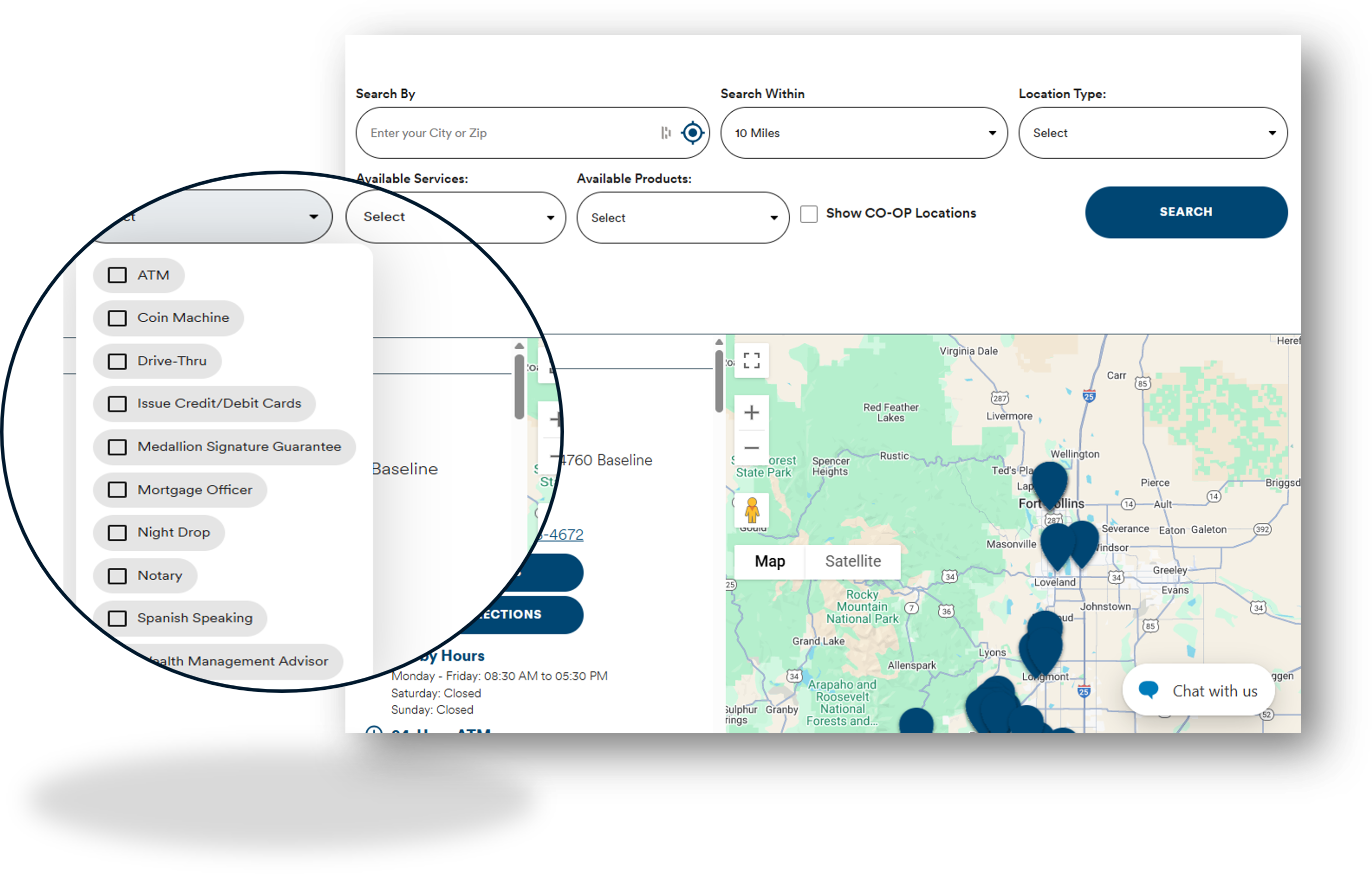 Our branch and ATM locations will still be listed at ElevationsCU.com/branch-locations and will be easy to find through our new website.